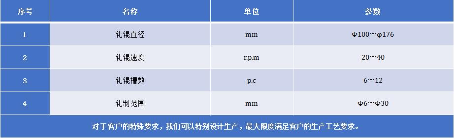 用于黑色金屬或有色金屬盤(pán)料端頭軋制。軋制品用于拉拔機(jī)穿模使用。